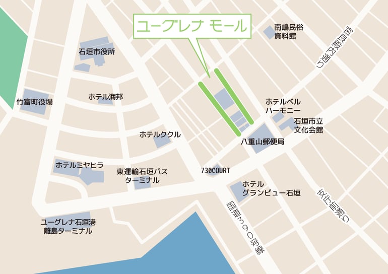 ユーグレナ石垣港離島ターミナルや美崎町方面には、「系統4番(平得大浜白保経由空港線)」もしくは