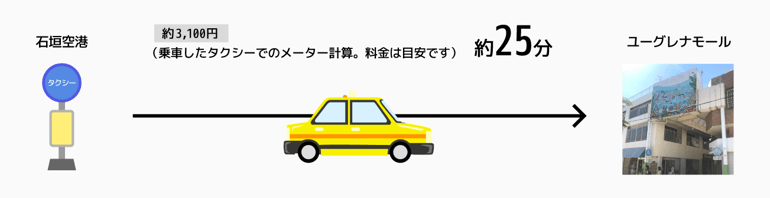 ユーグレナ石垣港離島ターミナルまでの所要時間は約25分で約3,100円。