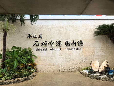まず石垣空港に到着したら、空港出入り口にある人気の撮影スポットで写真を撮りましょう。弾丸旅行の移動手段は、自分たちの好きなタイミングで動けるレンタカーもしくはタクシーチャーターがオススメです。